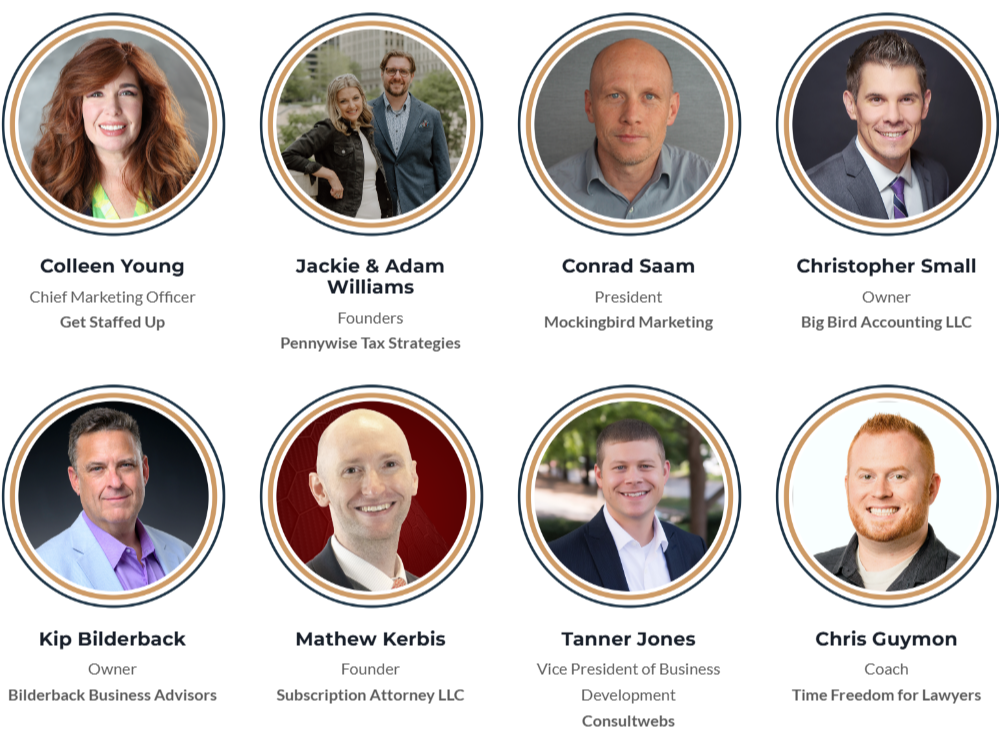 Answering your burning questions about making more money and working less time requires you to see your business through a new lens. We have gathered more than 30 speakers to hang out with you for 3 days and help you navigate this solution and individualize it for your firm and your needs.